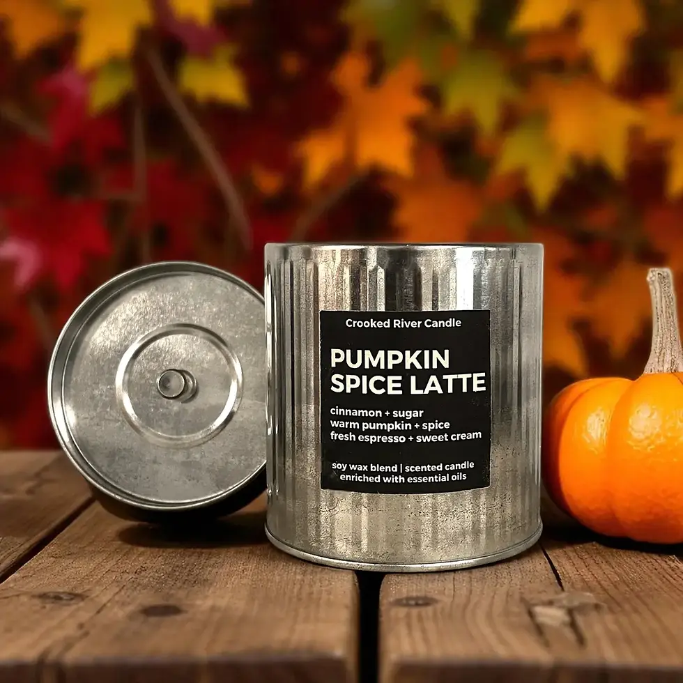 Pumpkin Spice Latte Candle - Rustic Tin - Wood Wick